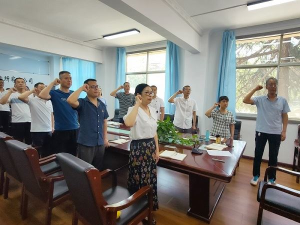 大會(huì)在雄壯的《國(guó)歌》聲中拉開(kāi)序幕。在黨委書(shū)記寇德萬(wàn)的領(lǐng)誓下,全體黨員一同宣誓,重溫入黨誓詞。面對(duì)鮮紅的黨旗,全體黨員共同高舉右拳,神情莊重、精神飽滿、聲音鏗鏘、句句千鈞,每位黨員再一次接受了心靈的洗禮,進(jìn)一步堅(jiān)定了立場(chǎng)信念和初心使命,增強(qiáng)了砥礪前行再出發(fā)的勇氣。