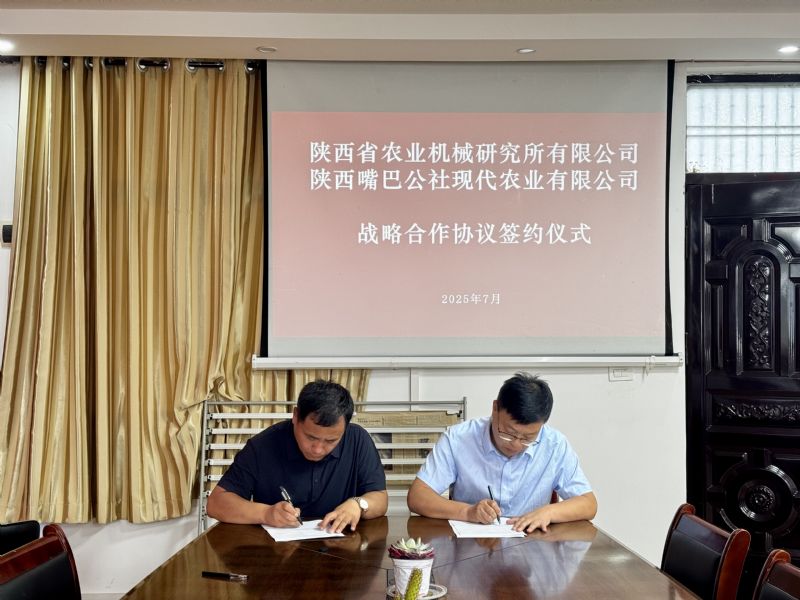 2025年7月8日,陜西省農(nóng)業(yè)機(jī)械研究所有限公司與陜西嘴巴公社現(xiàn)代農(nóng)業(yè)有限公司舉行了戰(zhàn)略合作簽約儀式。公司執(zhí)行董事、總經(jīng)理劉曉峰與陜西嘴巴公社現(xiàn)代農(nóng)業(yè)有限公司(以下簡稱“嘴巴公社”)執(zhí)行董事張恒忠共同簽署協(xié)議,標(biāo)志著雙方將緊密攜手,以科技賦能現(xiàn)代農(nóng)業(yè)發(fā)展,聚焦現(xiàn)代農(nóng)業(yè)綠色生產(chǎn)與智能裝備,開啟深度合作新篇章。