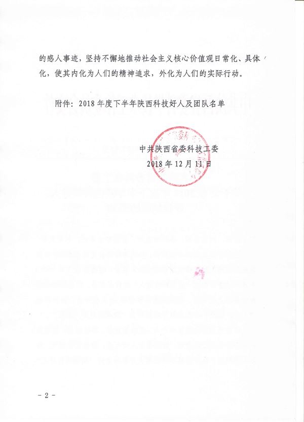 根據(jù)省委科技工委《關(guān)于公布2018年度下半年陜西科技好人評(píng)議結(jié)果的通知》的(陜科工辦發(fā)[2018]93號(hào))文件通知,我所農(nóng)業(yè)工程研究室張鵬霞同志被省委科技工委評(píng)為下半年“陜西科技好人”。